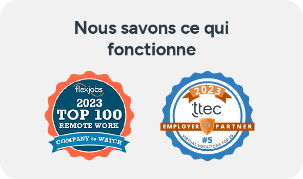 «Du travail à la fine pointe, au moyen de technologies à domicile. Fondée sur des valeurs. Dévouée à votre croissance. Voici quelques raisons pour lesquelles nous avons été reconnus par les chefs de file de l'industrie pour notre engagement à l'égard du télétravail.»